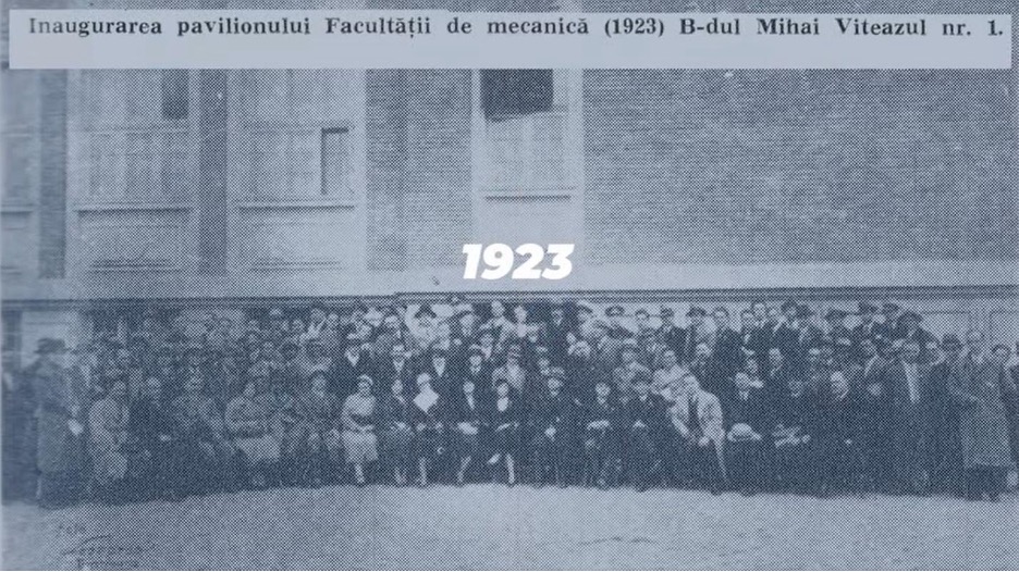 La 11 noiembrie 1923 se inaugurează „Pavilionul Mecanic”, prima clădire proprie Şcolii Politehnice, construită pe Bd. Mihai Viteazu, pe terenul atribuit de Primărie; clădirea însumează o suprafaţă de 1016 mp, având trei etaje, şi cuprindea un amfiteatru, 2 săli de curs, 2 săli de desen, 15 laboratoare, 3 muzee, 9 birouri, un atelier. Tot în 1923 se dau în folosință trei vile pentru locuințele corpului didactic.